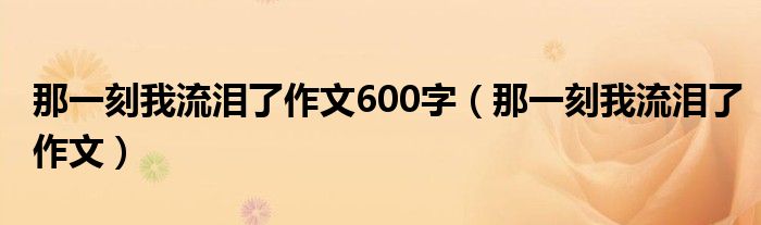 关于那一刻我流泪了作文600字,那一刻我流泪了作文这个很多人还不知道,今天菲菲来为大家解答以上的问题,现在让我们一起来看看吧!