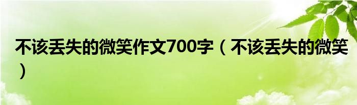 关于不该丢失的微笑作文700字,不该丢失的微笑这个很多人还不知道,今天菲菲来为大家解答以上的问题,现在让我们一起来看看吧!