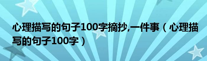 关于心理描写的句子100字摘抄,一件事,心理描写的句子100字这个很多人还不知道,今天菲菲来为大家解答以上的问题,现在让我们一起来看看吧!