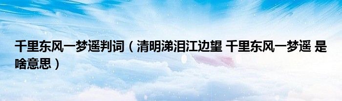 关于千里东风一梦遥判词,清明涕泪江边望 千里东风一梦遥 是啥意思这个很多人还不知道,今天菲菲来为大家解答以上的问题,现在让我们一起来看看吧!