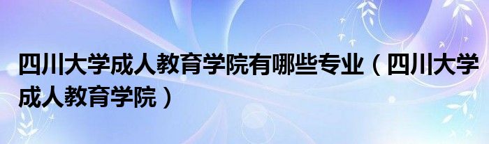 关于四川大学成人教育学院有哪些专业,四川大学成人教育学院这个很多人还不知道,今天菲菲来为大家解答以上的问题,现在让我们一起来看看吧!