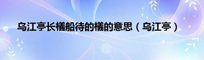 关于乌江亭长檥船待的檥的意思,乌江亭这个很多人还不知道,今天菲菲来为大家解答以上的问题,现在让我们一起来看看吧!