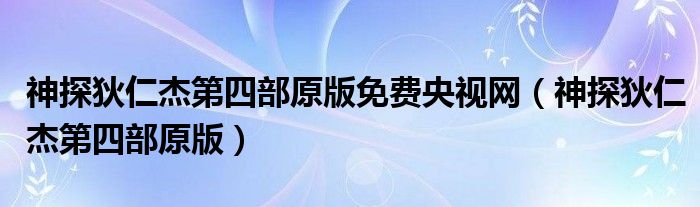 关于神探狄仁杰第四部原版免费央视网,神探狄仁杰第四部原版这个很多人还不知道,今天菲菲来为大家解答以上的问题,现在让我们一起来看看吧!