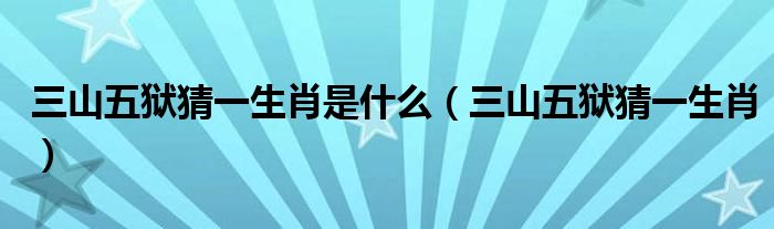 关于三山五狱猜一生肖是什么,三山五狱猜一生肖这个很多人还不知道,今天菲菲来为大家解答以上的问题,现在让我们一起来看看吧!