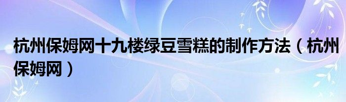 关于杭州保姆网十九楼绿豆雪糕的制作方法,杭州保姆网这个很多人还不知道,今天菲菲来为大家解答以上的问题,现在让我们一起来看看吧!
