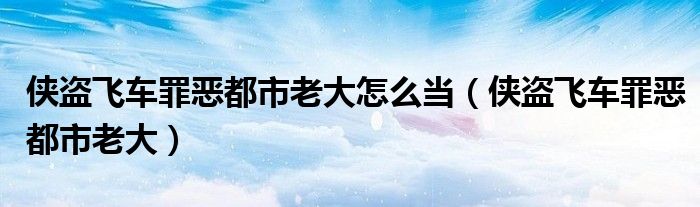 侠盗飞车罪恶都市老大怎么当(侠盗飞车罪恶都市老大)
