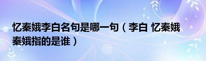关于忆秦娥李白名句是哪一句,李白 忆秦娥 秦娥指的是谁这个很多人还不知道,今天菲菲来为大家解答以上的问题,现在让我们一起来看看吧!