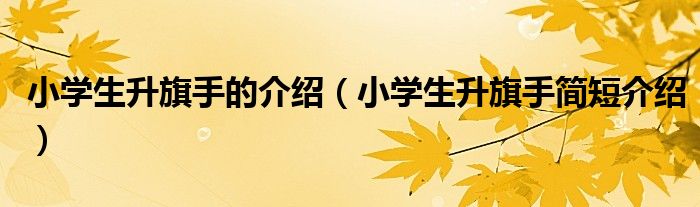 关于小学生升旗手的介绍,小学生升旗手简短介绍这个很多人还不知道,今天菲菲来为大家解答以上的问题,现在让我们一起来看看吧!
