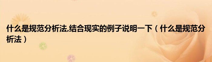 关于什么是规范分析法,结合现实的例子说明一下,什么是规范分析法这个很多人还不知道,今天菲菲来为大家解答以上的问题,现在让我们一起来看看吧!