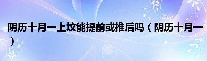 关于阴历十月一上坟能提前或推后吗,阴历十月一这个很多人还不知道,今天菲菲来为大家解答以上的问题,现在让我们一起来看看吧!