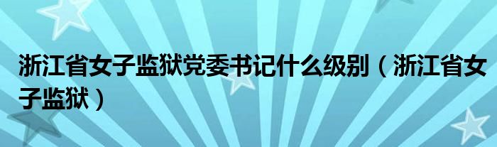 关于浙江省女子监狱党委书记什么级别,浙江省女子监狱这个很多人还不知道,今天菲菲来为大家解答以上的问题,现在让我们一起来看看吧!