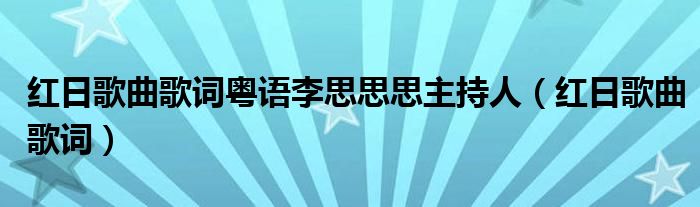 关于红日歌曲歌词粤语李思思思主持人,红日歌曲歌词这个很多人还不知道,今天菲菲来为大家解答以上的问题,现在让我们一起来看看吧!