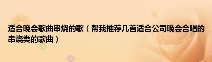 关于适合晚会歌曲串烧的歌,帮我推荐几首适合公司晚会合唱的串烧类的歌曲这个很多人还不知道,今天菲菲来为大家解答以上的问题,现在让我们一起来看看吧!