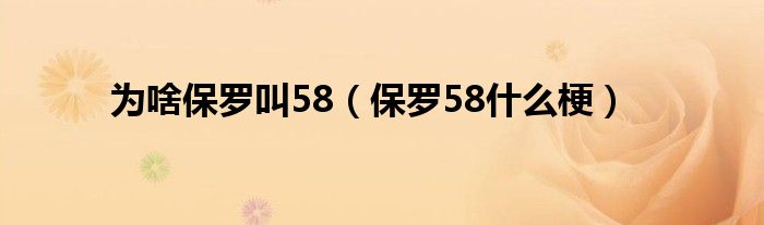 为啥保罗叫58(保罗58什么梗)