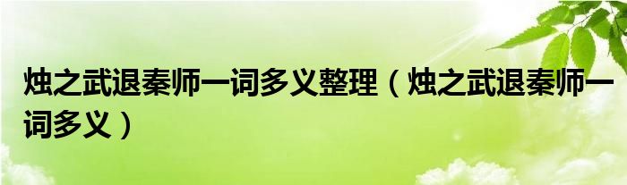 关于烛之武退秦师一词多义整理,烛之武退秦师一词多义这个很多人还不知道,今天菲菲来为大家解答以上的问题,现在让我们一起来看看吧!