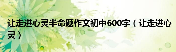 关于让走进心灵半命题作文初中600字,让走进心灵这个很多人还不知道,今天菲菲来为大家解答以上的问题,现在让我们一起来看看吧!