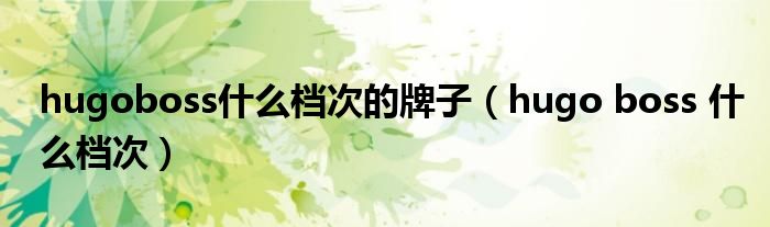 大家好,小晋来为大家解答以下问题,关于hugoboss什么档次的牌子,hugo boss 什么档次很多人还不知道,今天让我们一起来看看吧!