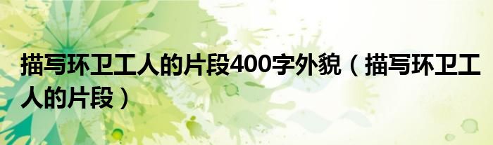 关于描写环卫工人的片段400字外貌,描写环卫工人的片段这个很多人还不知道,今天菲菲来为大家解答以上的问题,现在让我们一起来看看吧!
