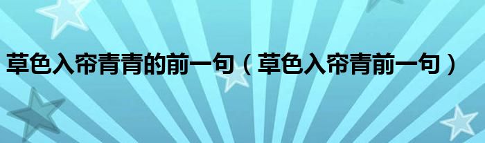 关于草色入帘青青的前一句,草色入帘青前一句这个很多人还不知道,今天菲菲来为大家解答以上的问题,现在让我们一起来看看吧!