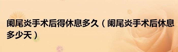 关于阑尾炎手术后得休息多久,阑尾炎手术后休息多少天这个很多人还不知道,今天菲菲来为大家解答以上的问题,现在让我们一起来看看吧!