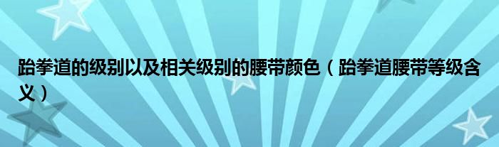 关于跆拳道的级别以及相关级别的腰带颜色,跆拳道腰带等级含义这个很多人还不知道,今天菲菲来为大家解答以上的问题,现在让我们一起来看看吧!
