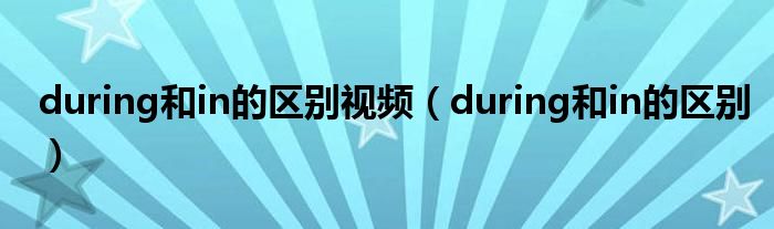 关于during和in的区别视频,during和in的区别这个很多人还不知道,今天菲菲来为大家解答以上的问题,现在让我们一起来看看吧!