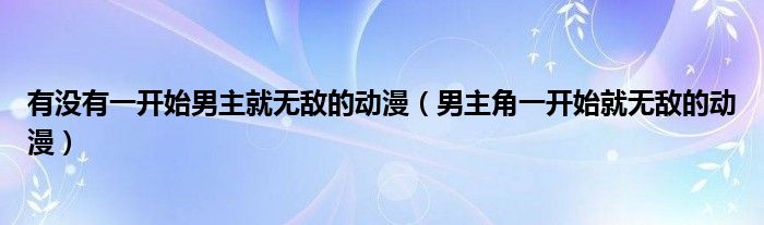 关于有没有一开始男主就无敌的动漫,男主角一开始就无敌的动漫这个很多人还不知道,今天菲菲来为大家解答以上的问题,现在让我们一起来看看吧!