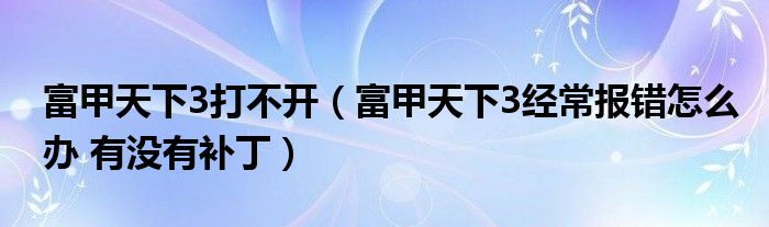 关于富甲天下3打不开,富甲天下3经常报错怎么办 有没有补丁这个很多人还不知道,今天菲菲来为大家解答以上的问题,现在让我们一起来看看吧!