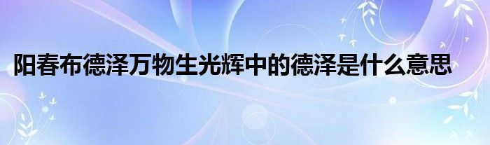 关于阳春布德泽万物生光辉中的德泽是什么意思这个很多人还不知道,今天菲菲来为大家解答以上的问题,现在让我们一起来看看吧!