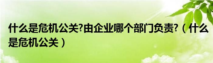 关于什么是危机公关?由企业哪个部门负责?,什么是危机公关这个很多人还不知道,今天菲菲来为大家解答以上的问题,现在让我们一起来看看吧!