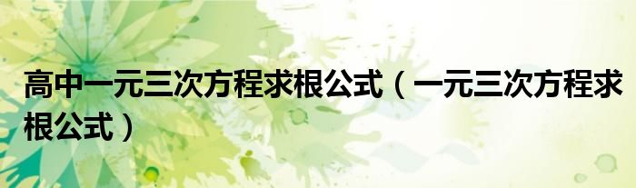 关于高中一元三次方程求根公式,一元三次方程求根公式这个很多人还不知道,今天菲菲来为大家解答以上的问题,现在让我们一起来看看吧!