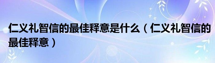 关于仁义礼智信的最佳释意是什么,仁义礼智信的最佳释意这个很多人还不知道,今天菲菲来为大家解答以上的问题,现在让我们一起来看看吧!