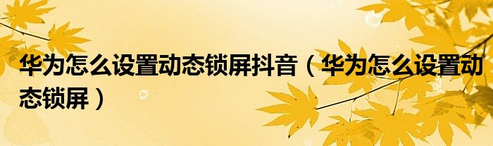 大家好,小晋来为大家解答以下问题,关于华为怎么设置动态锁屏抖音,华为怎么设置动态锁屏很多人还不知道,今天让我们一起来看看吧!