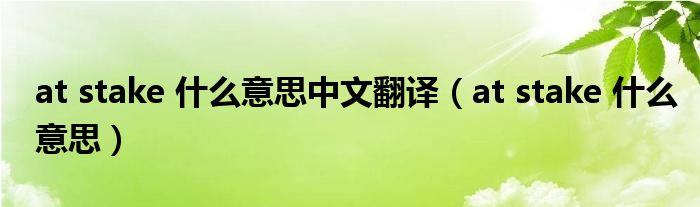 关于at stake 什么意思中文翻译,at stake 什么意思这个很多人还不知道,今天菲菲来为大家解答以上的问题,现在让我们一起来看看吧!