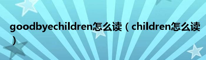 关于goodbyechildren怎么读,children怎么读这个很多人还不知道,今天菲菲来为大家解答以上的问题,现在让我们一起来看看吧!