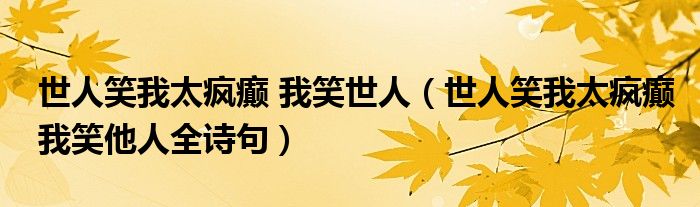 世人笑我太疯癫 我笑世人(世人笑我太疯癫我笑他人全诗句)