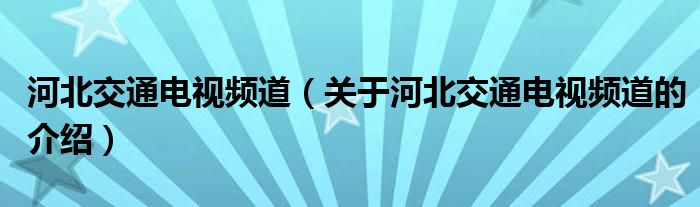 大家好,今天小乐来为大家解答以上的问题。河北交通电视频道,关于河北交通电视频道的介绍很多人还不知道,现在让我们一起来看看吧!