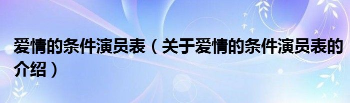 大家好,今天小乐来为大家解答以上的问题。爱情的条件演员表,关于爱情的条件演员表的介绍很多人还不知道,现在让我们一起来看看吧!