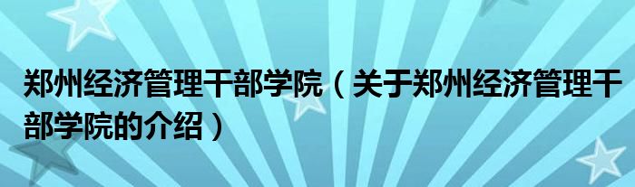 大家好,今天小乐来为大家解答以上的问题。郑州经济管理干部学院,关于郑州经济管理干部学院的介绍很多人还不知道,现在让我们一起来看看吧!