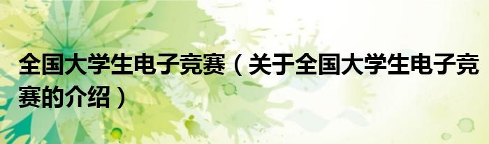 大家好,今天小乐来为大家解答以上的问题。全国大学生电子竞赛,关于全国大学生电子竞赛的介绍很多人还不知道,现在让我们一起来看看吧!