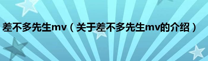 大家好,今天小乐来为大家解答以上的问题。差不多先生mv,关于差不多先生mv的介绍很多人还不知道,现在让我们一起来看看吧!