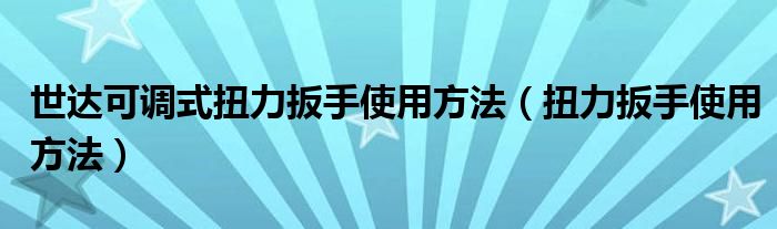 关于世达可调式扭力扳手使用方法,扭力扳手使用方法这个很多人还不知道,今天菲菲来为大家解答以上的问题,现在让我们一起来看看吧!