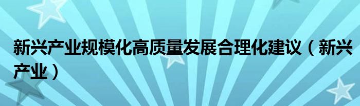关于新兴产业规模化高质量发展合理化建议,新兴产业这个很多人还不知道,今天菲菲来为大家解答以上的问题,现在让我们一起来看看吧!