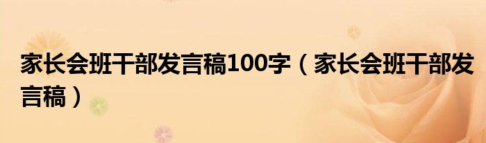 关于家长会班干部发言稿100字,家长会班干部发言稿这个很多人还不知道,今天菲菲来为大家解答以上的问题,现在让我们一起来看看吧!