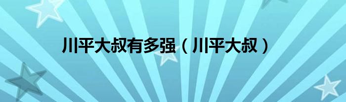 关于川平大叔有多强,川平大叔这个很多人还不知道,今天菲菲来为大家解答以上的问题,现在让我们一起来看看吧!