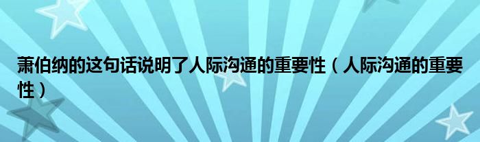 关于萧伯纳的这句话说明了人际沟通的重要性,人际沟通的重要性这个很多人还不知道,今天菲菲来为大家解答以上的问题,现在让我们一起来看看吧!