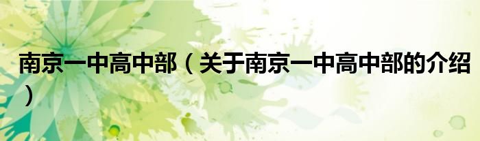 大家好,今天小乐来为大家解答以上的问题。南京一中高中部,关于南京一中高中部的介绍很多人还不知道,现在让我们一起来看看吧!