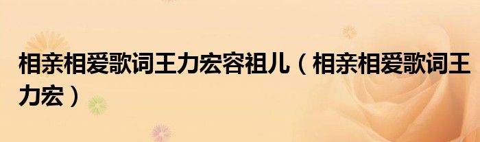 关于相亲相爱歌词王力宏容祖儿,相亲相爱歌词王力宏这个很多人还不知道,今天菲菲来为大家解答以上的问题,现在让我们一起来看看吧!
