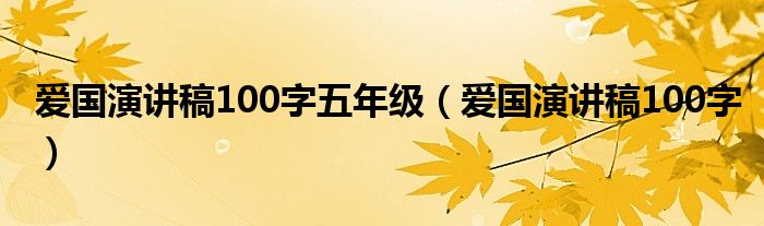 关于爱国演讲稿100字五年级,爱国演讲稿100字这个很多人还不知道,今天菲菲来为大家解答以上的问题,现在让我们一起来看看吧!