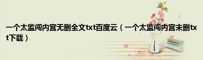 关于一个太监闯内宫无删全文txt百度云,一个太监闯内宫未删txt下载这个很多人还不知道,今天菲菲来为大家解答以上的问题,现在让我们一起来看看吧!